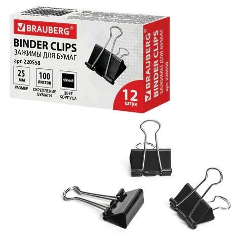 Зажимы 25мм черн. "Brauberg" 220558, код 31053, цена 9,55 руб.