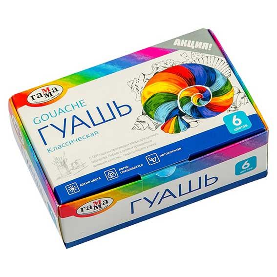Гуашь 6цв. "Гамма" 20мл Классическая 2210306
