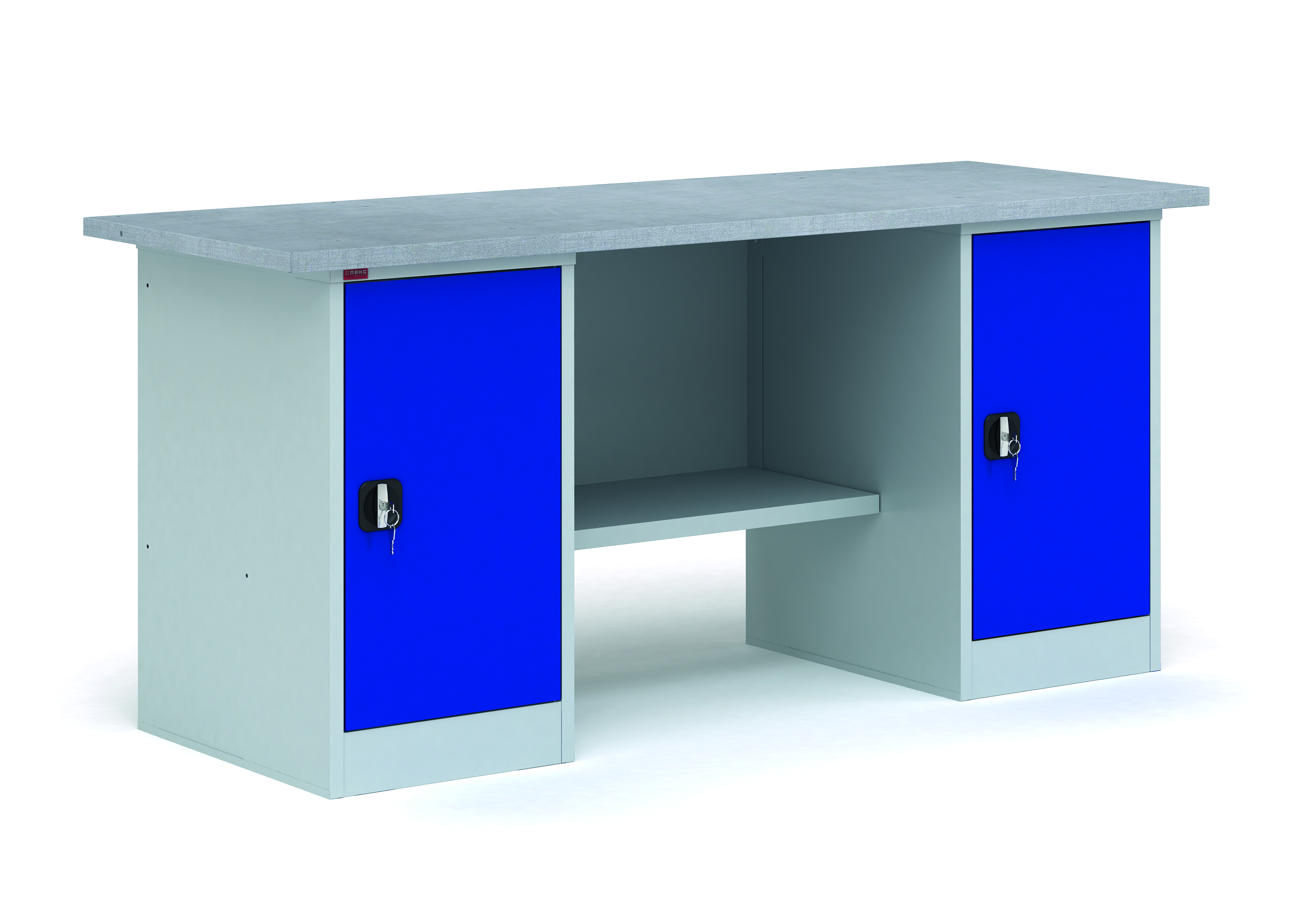 Верстак ВП-5/1.6 685*1600*860 Столешница, стенка задняя, 2 тумбыТ1, полка верстачная
