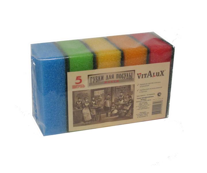 Губка д/посуды VitAlux (5шт.) МАКСИ, код 25639, цена 51,55 руб.