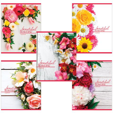 Тетрадь 48л. Brauberg А5 клетка Цветы на белом 403036